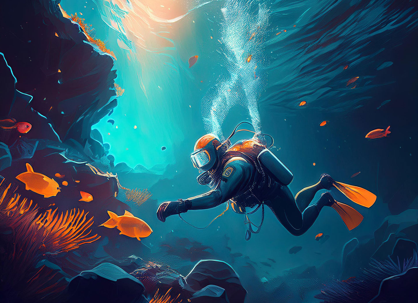 スクーバダイビング(スキューバダイビング)とは、Self Contained Underwater Breathing Apparatusの頭文字をとったSCUBAの日本語読みで、自給式水中呼吸器装置を用いて行う潜水活動(Diving)のことを指します。